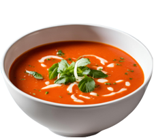A perfect harmony of sun-kissed tomatoes and rich coconut milk, meticulously crafted to achieve perfection. This comforting, silky soup is infused with a touch of fragrant herbs, offering a soothing delight for the senses.