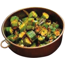A vegan Indian dish featuring tender okra stir-fried with spices and tangy tomatoes, accompanied by fragrant basmati rice.