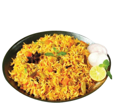 A delightful blend of aromatic basmati rice, freshly picked vegetables, and exotic spices, slow-cooked to create a harmonious explosion of flavors. This regal Indian dish guarantees a burst of taste in every bite. (Adorned with cashew nuts, almonds, and raisins.)