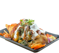 A delicious mix of crispy papadi, spiced potatoes, and tangy chutneys-pure joy in every bite!