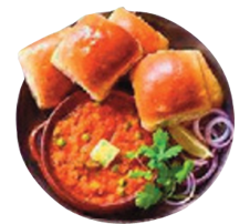 Indian street food specialty featuring mashed vegetables cooked with spices, served with buttered pav buns.